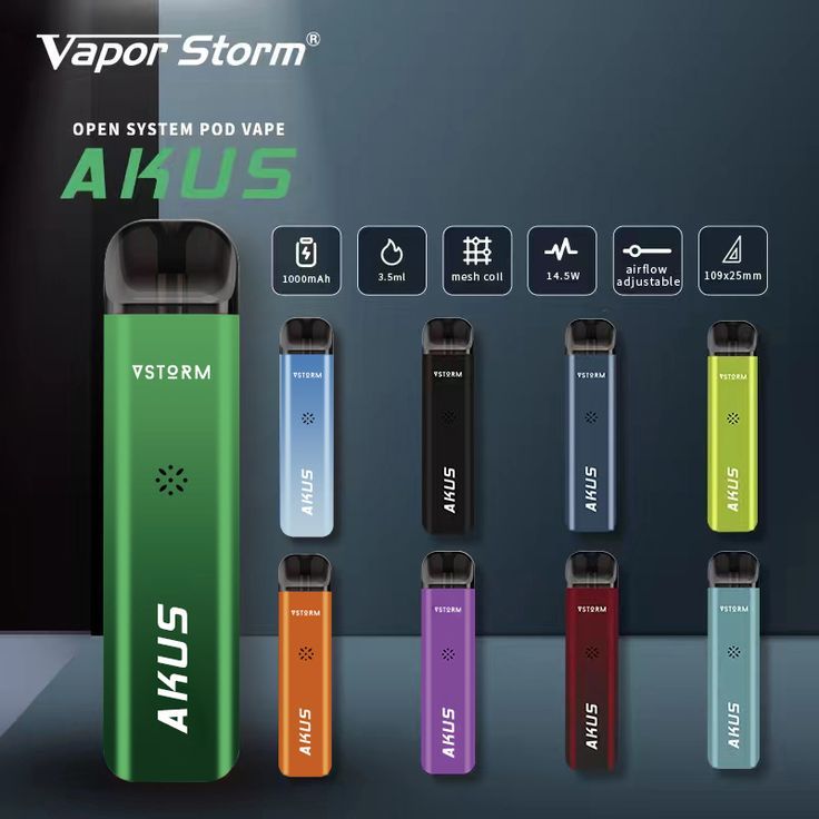 Vapor Storm AKUS 是一款兼具設計感與實用性的電子煙 Pod 系統裝置,擁有輕巧外型與高續航電池,專為追求品質與便攜的用戶打造。搭載 1000mAh 大容量電池與 3.5ml 煙彈,無論新手或老手皆能輕鬆上手,享受穩定又順暢的 vaping 體驗。